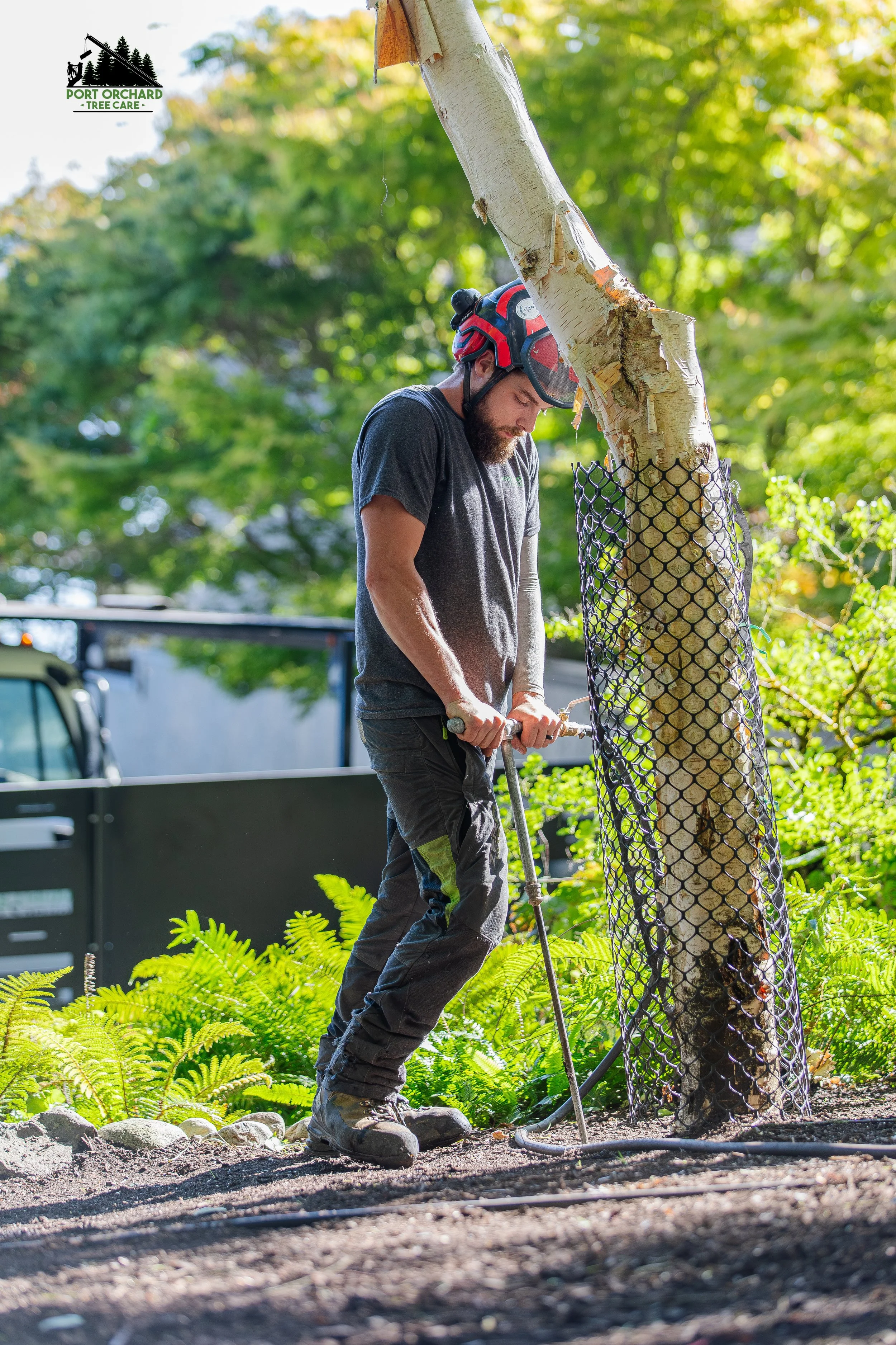 Pictured: Systemic insecticide, soil injection of predatory nematodes to combat aphid population.